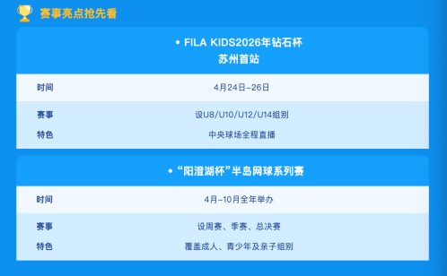 最近、蘇州新源国際テニスセンターは、「陽城湖カップ」ペニンシュラテニスシリーズと2026 FILA KIDSダイヤモンドカップユーステニスチャレンジという2つの主要イベントを開催し、どちらも長江デルタテニスファンにプロフェッショナルでエキサイティングで高水準の競技体験をもたらしました。